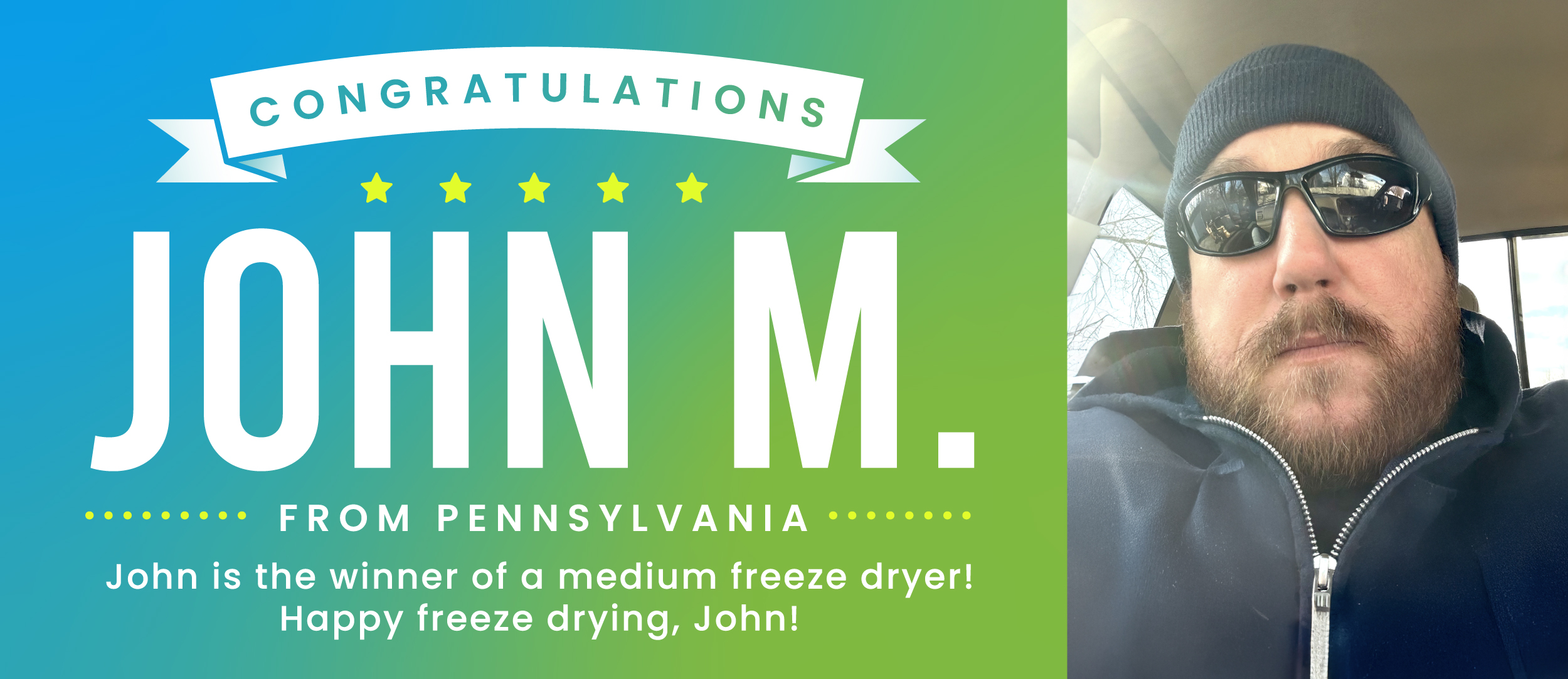 Congratulations to John M. from Pennsylvania! He is the winner of a medium Harvest Right freeze dryer!